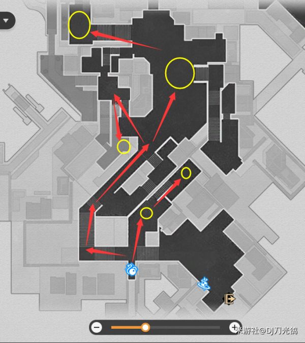 传送回遗器本,下楼梯到岔路口时,左转回头下楼梯,有一只药王弩炮手(如果你鋤地队伍带的娜塔莎也可以直接玩抛物线)然后回到岔路口直走到大广场,有三只野怪。打完左转走大路下楼,有两只野怪。