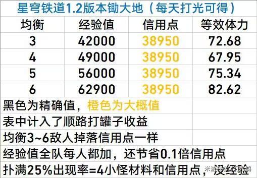 以下是各均衡等级锄大地一轮单个角色可以获取的经验数值。