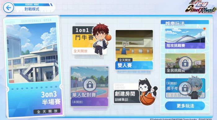 單人模式除了可以針對各種籃球遊戲的基礎操作,進行自主訓練,也可以針對各別角色的專屬技能熟悉操作。同時也有電腦對戰、人機模式、娛樂賽等玩法,適合不擅長真人競技的玩家從中獲得遊戲樂趣。