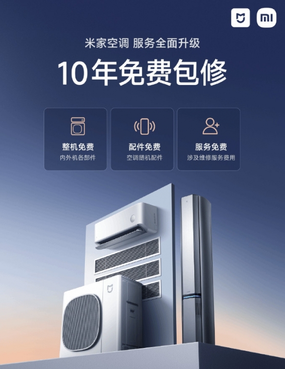 【小米集團總裁盧偉冰昨晚在直播中宣佈,米家空調將正式推出「10年免費包修」服務。自2025年1月1日起,凡完成首次安裝的米家空調用戶均可享受該項服務承諾。
