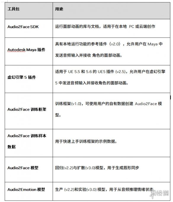 以下是開源工具的完整列表,更多詳情請查看面向遊戲開發的NVIDIA ACE: