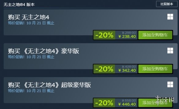 知名刷寶FPS遊戲《無主之地4》今日開啟發售後首次折扣,Steam享8折優惠。國區標準版原價298元,現價238元;豪華版原價428元,現價342.4元;超級豪華版原價556元,現價446.4元。