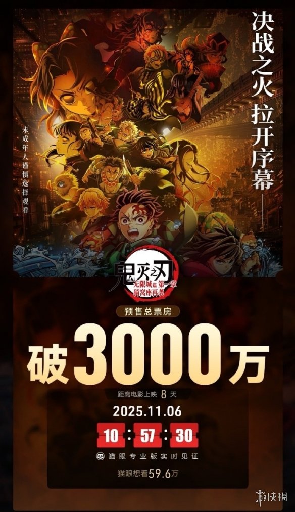 根據貓眼專業版數據,《鬼滅之刃 無限城篇》雖然剛剛宣布引進,距離上映還有8天的時間,但其點映及預售票房已突破3000萬元。