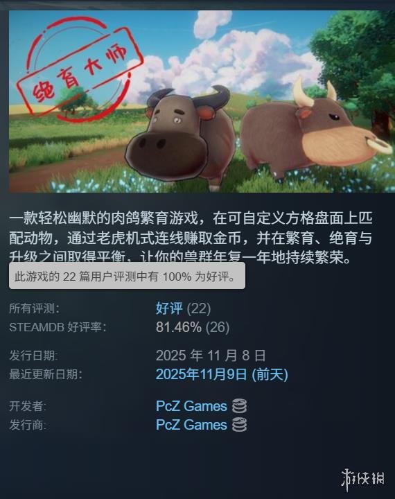 《絕育大師》肉鴿養殖遊戲現已登陸Steam 平台,首發優惠價僅需15.40元,支援中文。截至發稿前,本作僅收錄22位玩家評測,好評率達到了100%。