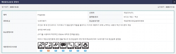 - 根據《遊戲產業振興法》第21條及《分級分類規定》第7條第2項規定,評定本作為12歲以上適用級別。