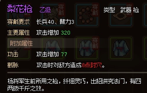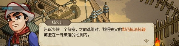 b. 楊家槍法:招募楊么兒獲得楊家牌位,來到破廟進入戰鬥,打破桌子發現暗道,進入密道使用楊家牌位即可獲得。