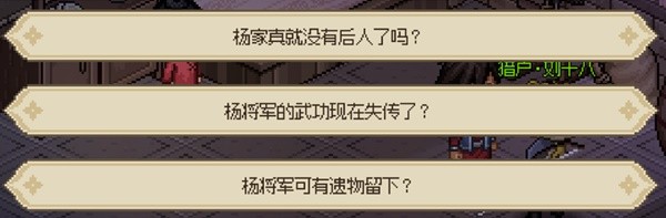 然後會觸發三條傳聞:楊家後人、楊家槍法、楊家槍