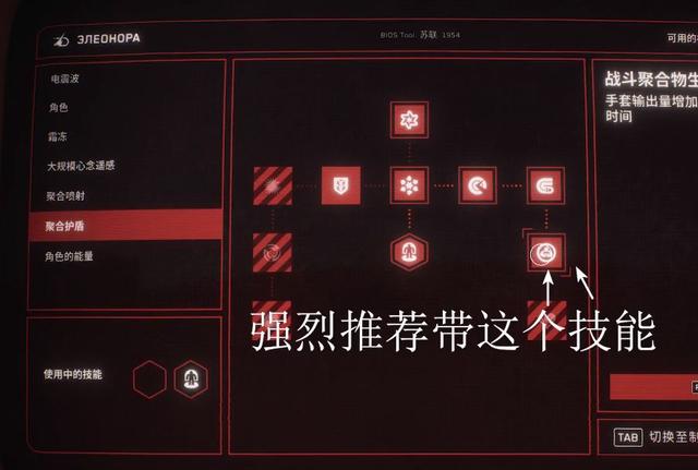 建議配置技能中“聚合護盾“的“戰鬥聚合物生成速度提升“技能,能讓手套的輸出量增加,延長護盾持續時間。