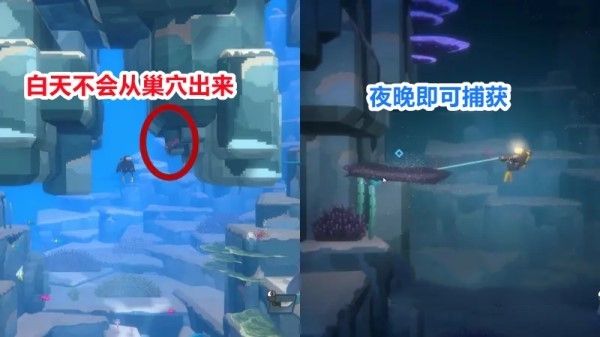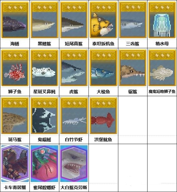 注意:卡車寄居蟹、雀尾螳螂蝦和大白鯊是暴風雨之夜才會出現的BOSS,通常夜晚不會出現在海裏。
