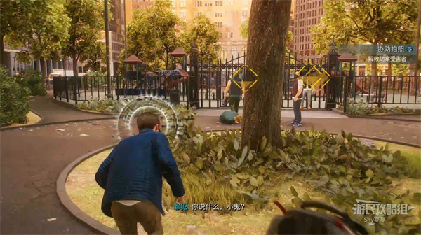 在公園進入戰鬥,不能使用蛛絲,就是單純的閃避、擊飛、格擋,好好熟悉一下基礎戰鬥吧!