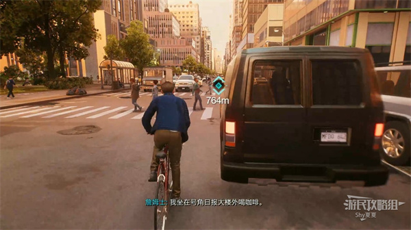 接取任務後會進入回憶,操作彼得騎自行車,來到公園。
